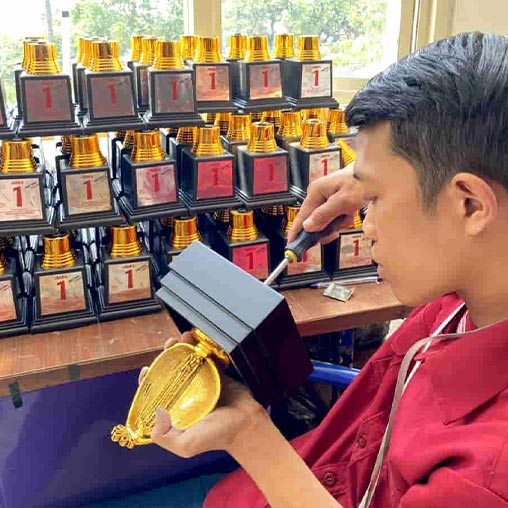 Kami menggabungkan teknologi tradisional dan modern dalam setiap proses produksi untuk menghasilkan plakat yang berkualitas tinggi, berkarakter, dan artistik. Penggunaan teknik tradisional, seperti ukiran tangan atau motif etnik khas, memberikan sentuhan autentik dan nuansa budaya yang kaya pada setiap plakat. Sementara itu, teknologi modern, seperti mesin cutting presisi dan pencetakan laser, memastikan setiap detail tampilan produk terlihat rapi, akurat, dan konsisten.